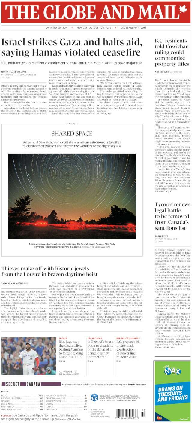 Inicio África Asia-Pacífico Europa Latinoamérica USA Canadá 20/Oct/2025 Version PC + Inicio | Canadá | Columbia Británica Manitoba Ontario Quebec volver Canada Edición de hoy Visita página web zoom ir web