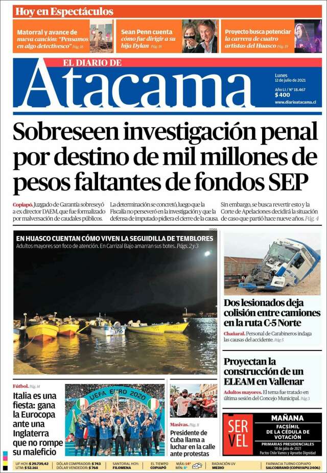 Inicio África Asia-Pacífico Europa Latinoamérica USA Canadá 12/Jul/2021 Version PC + Inicio III Región | III Región volver III Region Edición de hoy Visita página web zoom ir web