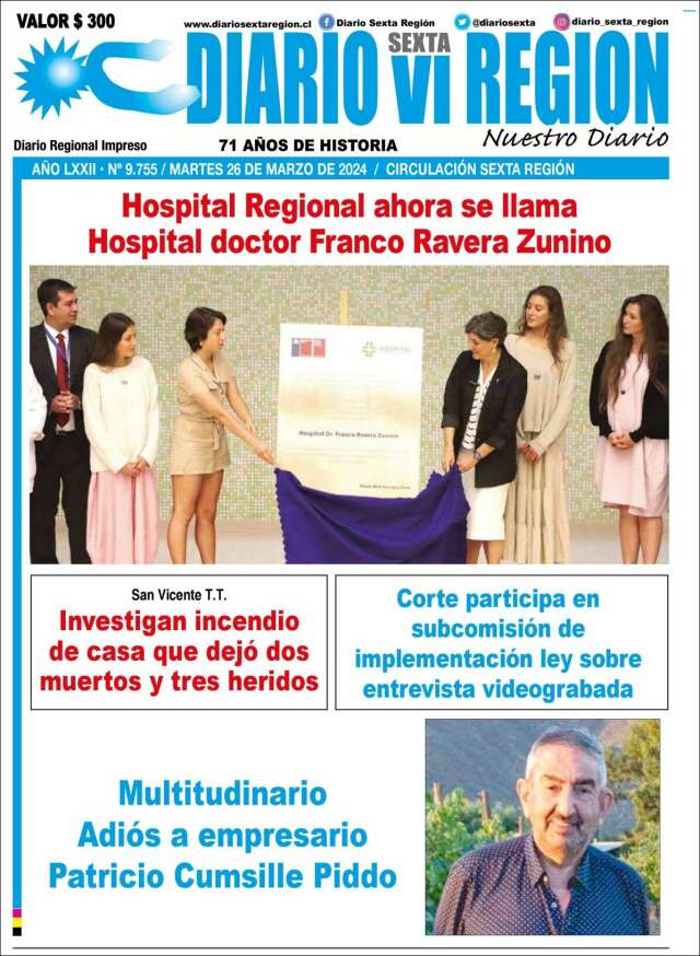 Inicio África Asia-Pacífico Europa Latinoamérica USA Canadá 26/Mar/2024 Version PC + Inicio VI Región | VI Región volver VI Region Edición de hoy Visita página web zoom ir web