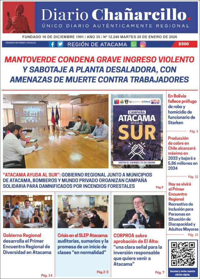 Inicio África Asia-Pacífico Europa Latinoamérica USA Canadá 20/Ene/2026 Version PC + Inicio III Región | III Región volver III Region Edición de hoy Visita página web zoom ir web
