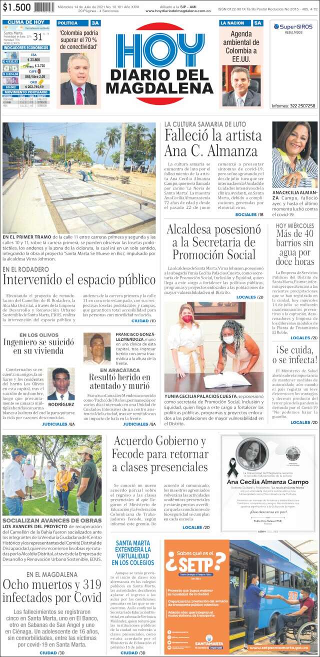 Home Africa Asia-Pacific Europe Latin America USA Canada 14/Jul/2021 Desktop version + Home Santa Marta | Santa Marta volver Santa Marta Edición de hoy Visit web page zoom go web