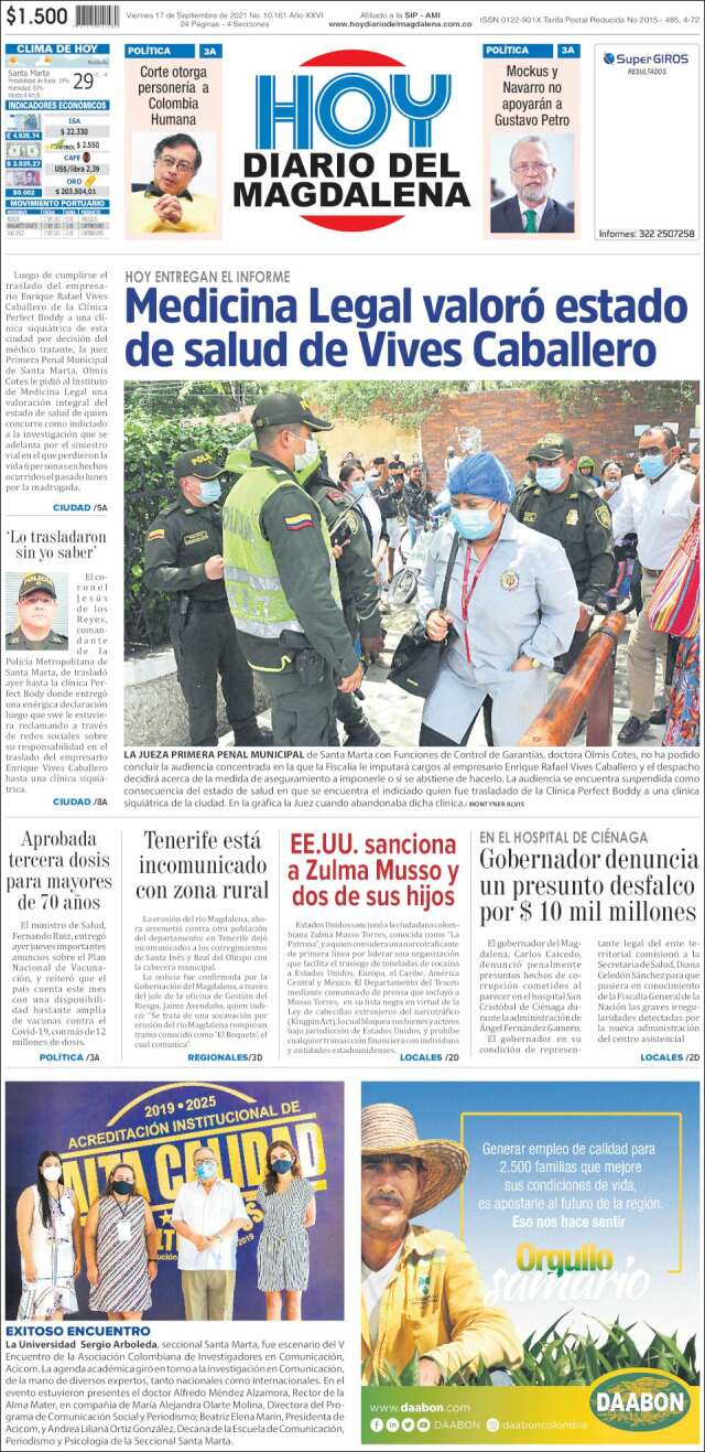 Inicio África Asia-Pacífico Europa Latinoamérica USA Canadá 17/Sep/2021 Version PC + Inicio Santa Marta | Santa Marta volver Santa Marta Edición de hoy Visita página web zoom ir web