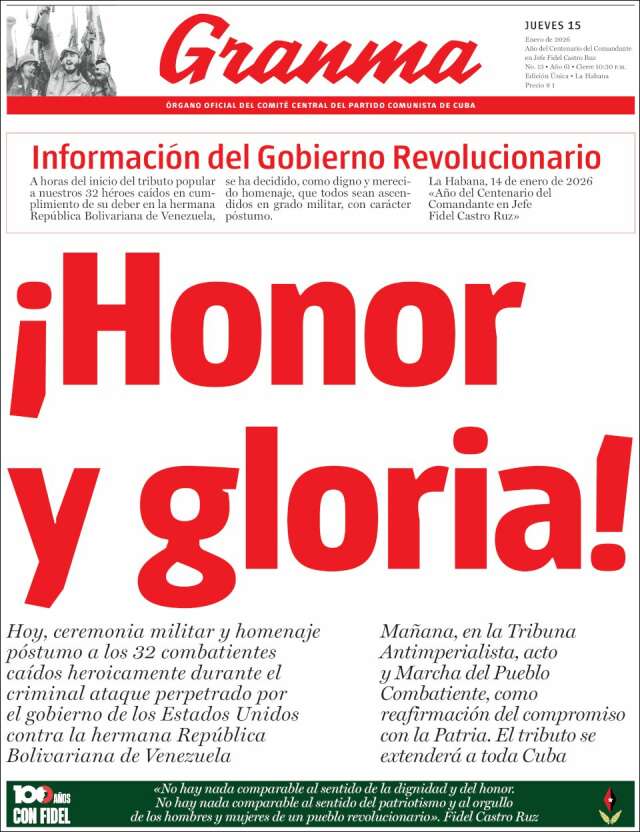 Inicio África Asia-Pacífico Europa Latinoamérica USA Canadá 15/Ene/2026 Version PC + Inicio | Cuba volver Cuba Edición de hoy Visita página web zoom ir web