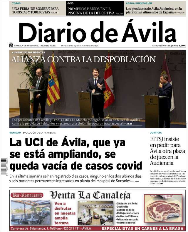 Inicio África Asia-Pacífico Europa Latinoamérica USA Canadá 4/Jul/2020 Version PC + Inicio Castilla y León | Ávila volver Ávila Edición de hoy Visita página web zoom ir web