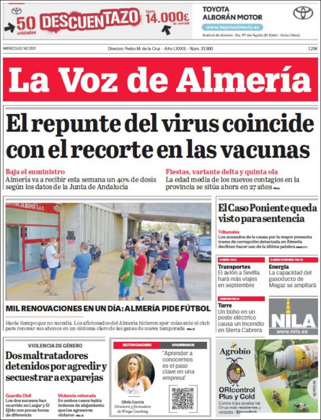 Home Africa Asia-Pacific Europe Latin America USA Canada 14/Jul/2021 Desktop version + Home Andalusia | Almeria volver Almería Edición de hoy Visit web page zoom go web
