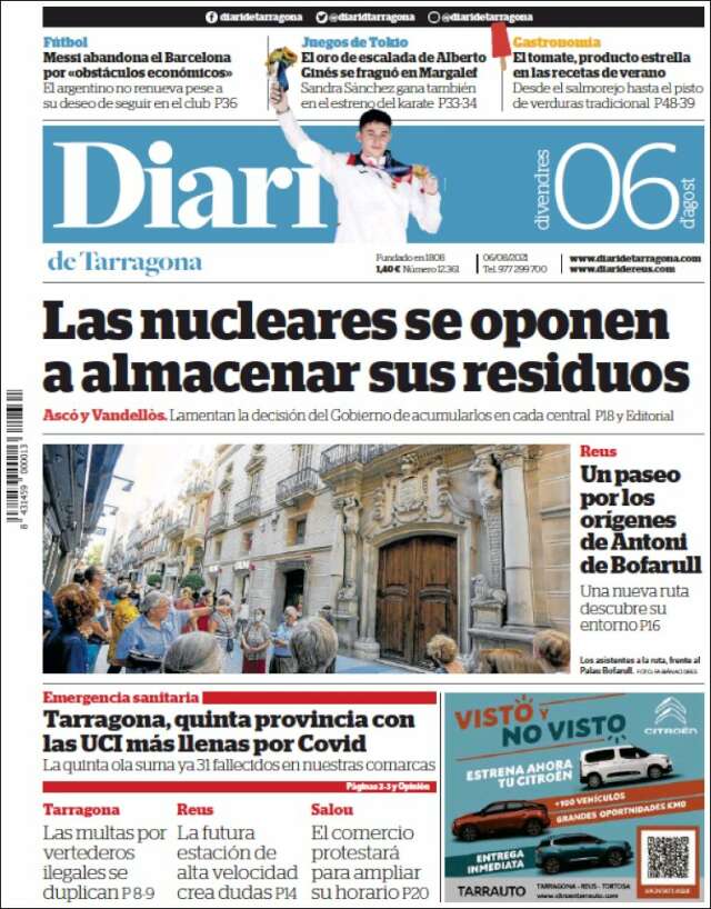 Inicio África Asia-Pacífico Europa Latinoamérica USA Canadá 6/Ago/2021 Version PC + Inicio Cataluña | Tarragona volver Tarragone Edición de hoy Visita página web zoom ir web