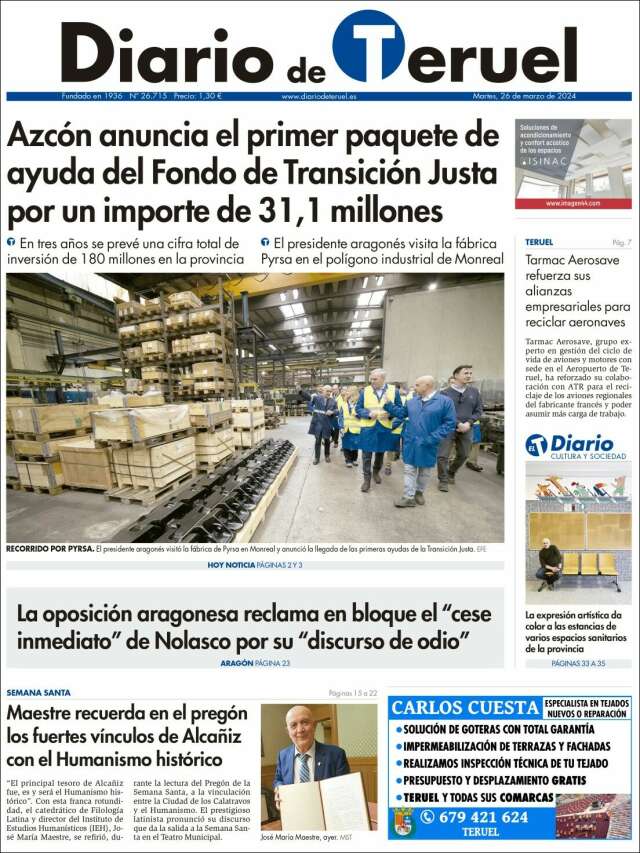 Inicio África Asia-Pacífico Europa Latinoamérica USA Canadá 26/Mar/2024 Version PC + Inicio Aragón | Teruel volver Teruel Edición de hoy Visita página web zoom ir web