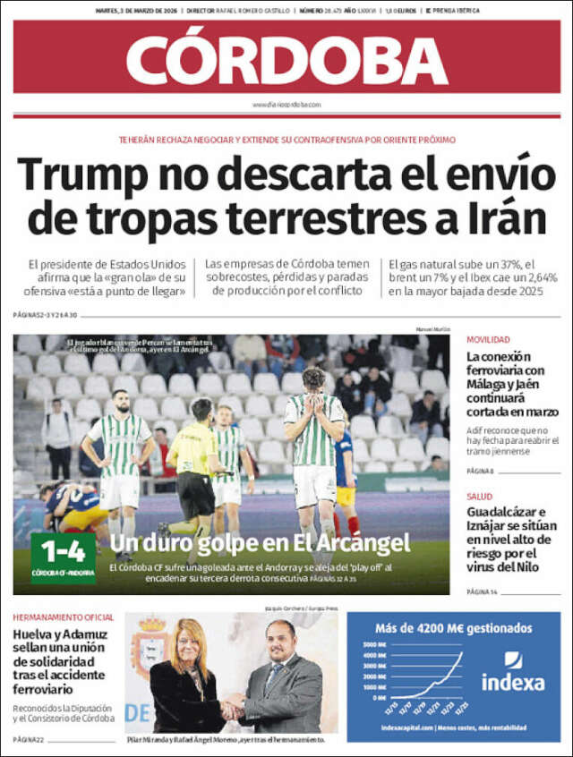 Home Africa Asia-Pacific Europe Latin America USA Canada 3/Mar/2026 Desktop version + Home Andalusia | Cordoba volver Córdoba Edición de hoy Visit web page zoom go web