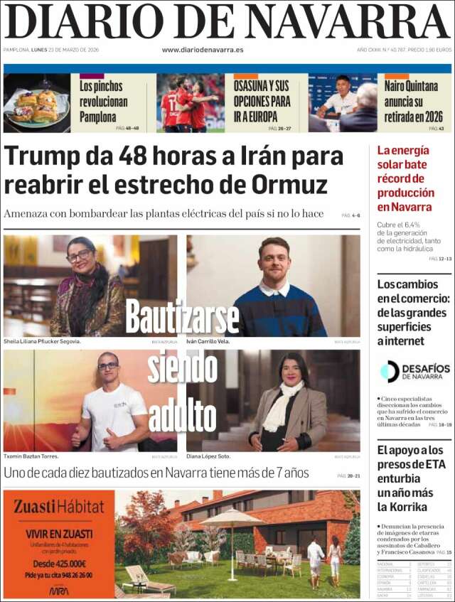 Inicio África Asia-Pacífico Europa Latinoamérica USA Canadá 23/Mar/2026 Version PC + Inicio España | Navarra volver Navarre Edición de hoy Visita página web zoom ir web