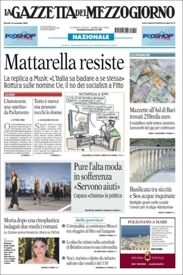 Inicio África Asia-Pacífico Europa Latinoamérica USA Canadá 14/Nov/2024 Version PC + Inicio Italia | Bari volver Bari Edición de hoy Visita página web zoom ir web