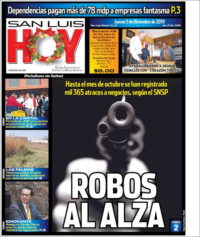 Inicio África Asia-Pacífico Europa Latinoamérica USA Canadá 5/Dic/2019 Version PC + Inicio México | San Luis Potosí volver San Luis Potosí Edición de hoy Visita página web zoom ir web