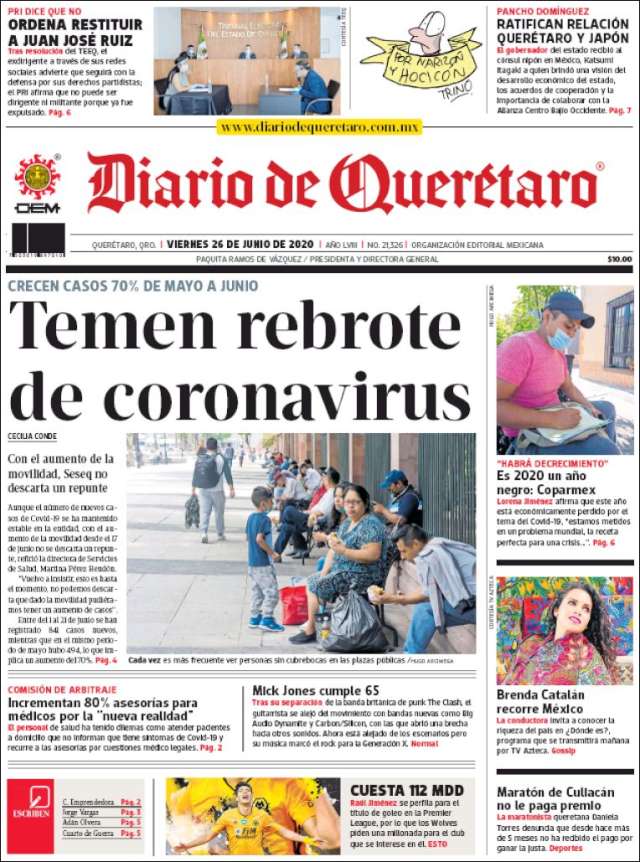 Home Africa Asia-Pacific Europe Latin America USA Canada 26/Jun/2020 Desktop version + Home Mexico | Queretaro volver Querétaro Edición de hoy Visit web page zoom go web
