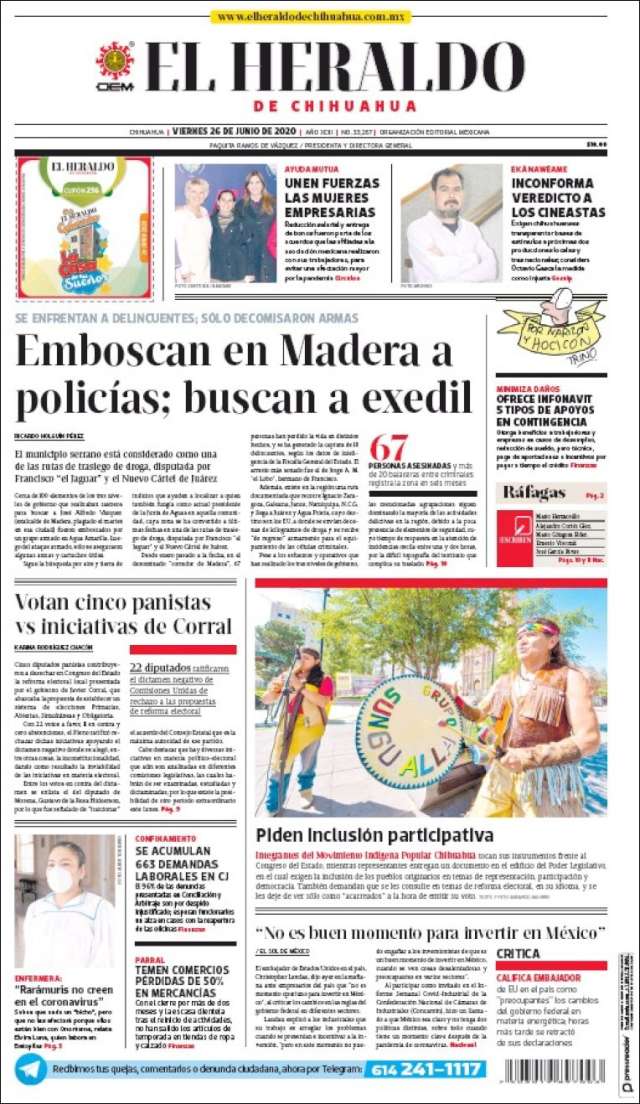 Home Africa Asia-Pacific Europe Latin America USA Canada 26/Jun/2020 Desktop version + Home Mexico | Chihuahua volver Chihuahua Edición de hoy Visit web page zoom go web