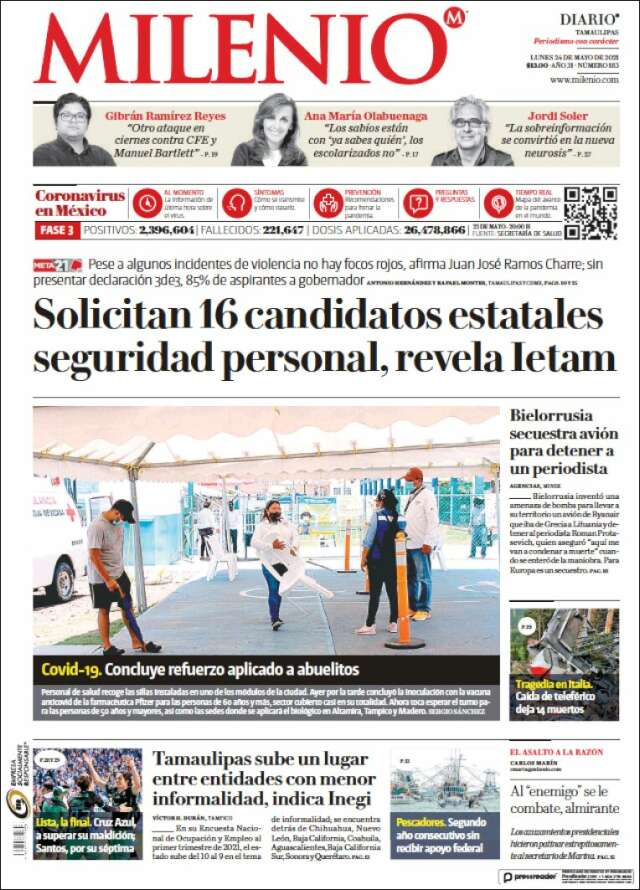 Home Africa Asia-Pacific Europe Latin America USA Canada 24/May/2021 Desktop version + Home Mexico | Tamaulipas volver Tamaulipas Edición de hoy Visit web page zoom go web