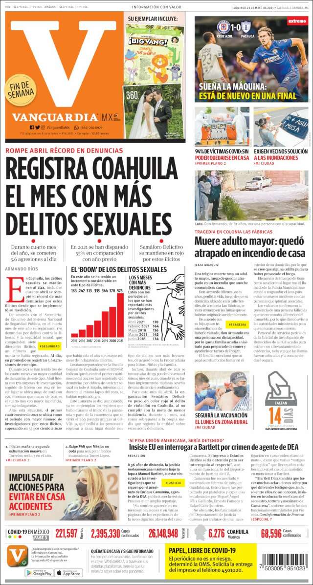 Home Africa Asia-Pacific Europe Latin America USA Canada 24/May/2021 Desktop version + Home Mexico | Coahuila volver Coahuila Edición de hoy Visit web page zoom go web