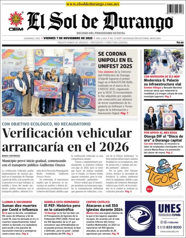 Inicio África Asia-Pacífico Europa Latinoamérica USA Canadá 7/Nov/2025 Version PC + Inicio México | Durango volver Durango Edición de hoy Visita página web zoom ir web