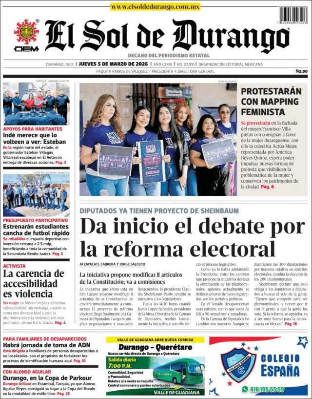 Home Africa Asia-Pacific Europe Latin America USA Canada 5/Mar/2026 Desktop version + Home Mexico | Durango volver Durango Edición de hoy Visit web page zoom go web