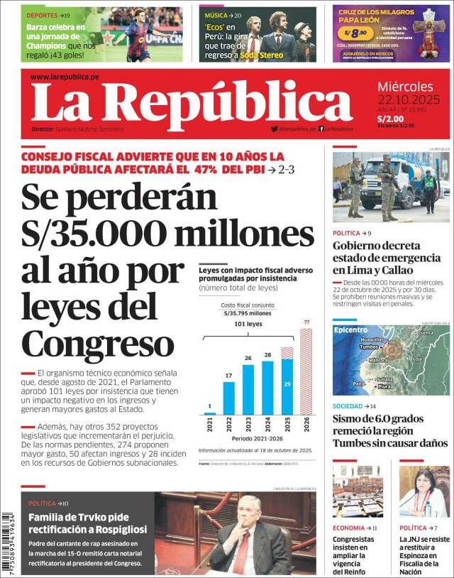 Inicio África Asia-Pacífico Europa Latinoamérica USA Canadá 22/Oct/2025 Version PC + Inicio Perú | Lima volver Lima Edición de hoy Visita página web zoom ir web